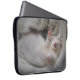 This laptop sleeve looks exactly as it does in picture. I actually thought is was too small until I put my laptop in it. It's a bit snug, but it fits. Figure it will stretch a bit, hopefully seams hold. Them seem good for now. I didn't have any personalization done, looks great as is.