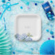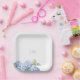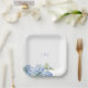White Floral Blue Hydrangea Initials Wedding Paper Plate
