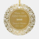 White Floral Damask- 50th Wedding Anniversary Ceramic Ornament