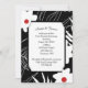 Contemporary white floral design with red centres on black for wedding invite.