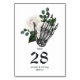 Whimsical vintage floral gothic skeleton hand wedding table number card in accents of white customizable to your event specifics.