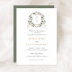 White Floral Greenery Ivy Monogram Crest Wedding Invitation