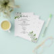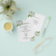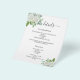 A modern, elegant wedding details/program/timeline. A white background, decorated with white watercolored florals and eucalyptus greenery. Personalize and add your names and wedding details. Black coloured letters.