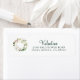 White floral greenery watercolor wreath, return address label. Elegant typography design with emerald green script and bold fonts.