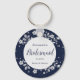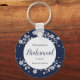 Stylish and chic white floral Bridesmaid Gift, personalize this keychain.