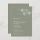 White floral line art flowers on a sage green background. Matching wedding invitation available.