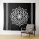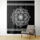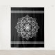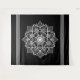 Elegant ornate white floral mandala circle design with white stripes accents and changeable black background.