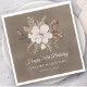 A beautiful bouquet of white flowers and neutral fall leaves decorate this 70th birthday napkin. The grey, taupe, and white foliage create an elegant and chic autumnal display that frame the white flowers perfectly. Happy 70th birthday is written below the flowers in a traditional and classic script. Two additional lines let you add the birthday celebrant's name and birthday date. All of the text can be personalized so you can create a custom napkin to meet your specific needs. This item is part of the White Floral Neutral Fall Flowers collection. It contains DIY templates you can use to create a stunning invitation suite and personalized welcome signs and party supplies such as napkins, paper cups and plates and coasters.