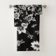 White Floral on Black Night Background Bath Towels Set by Gerson Ramos.