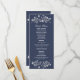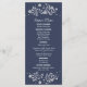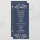 Elegant and stylish white floral on a navy blue background wedding reception menu.