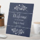 Stylish and trendy simple white floral wedding pedestal sign.