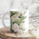 Start your day with a custom coffee mug adorned with White Florals. View all of our decor in our Zazzle store!