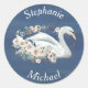 White Floral Swan on Blue Wedding Classic Round Sticker