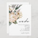 We designed this white floral we do wedding invitation to complete your rustic dark tropical wedding. With its bohemian watercolor greenery to its modern boho winter flowers, including protea, dahlia, and dried lotus, the design is sure to set off your moody, minimalist green and white theme. Change the text and add a photo to make it your own. Also, make sure to look through the rest of the collection to find coordinating items that will bring your whole wedding together!