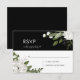 White on black, floral wedding sprigs RSVP card. Customizable. Part of a wedding collection