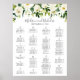 Use our white floral and green wedding seating chart to let your guests know their seating assignments. This design has guests arranged by alphabetical order - be sure to look for our table number version if you prefer that. The wording is completely customizable. Use Zazzle's "Personalize this template" tool to enter your wedding guest information.To add or remove tables or change the placement of the text boxes, font colour or size just click on the "Click to customize further" button to change those things. Be sure to check out our large selection of coordinating items by browsing the Modern White Flower Wedding collection!