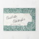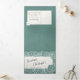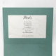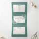 Line art white floral, poppies on an aqua cyan, textured background, a modern wedding invitation tri-fold all in one combination.