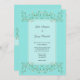 Vines of White flowers meet to form a heart on blue background. Simple Elegant floral Wedding Invitation.