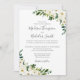 Invite your guests to your wedding with our white flower and greenery invitations. The wording is completely customizable - if you need to change the font, font colour, or size or the placement of the text boxes just click on the "Click to customize further" button to change those things. Be sure to check out our large selection of coordinating items by browsing the Modern White Floral Wedding collection!