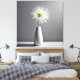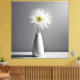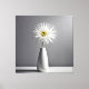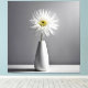 Single white flower in grey contemporary vase with shadow on gradient silver grey background