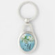 White Flower Deep Blue Sky Floral Country Monogram Initial Key Chain