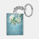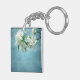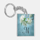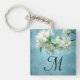 White Flower Deep Blue Sky Floral Country Monogram Initial Personalized Key Chain