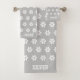 White Flower Pattern on Light Grey Personalized Bath Towel Set
