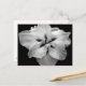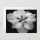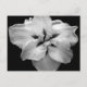 Black and white postcard with white flower, photo taken near beach in Connecticut.