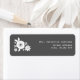An address label featuring white flowers at left over a grey background. Look for matching wedding invitations and postage at Jill's Paperie. Personalize the text with your name and address.