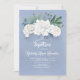White Flowers and Greenery Dusty Blue Baptism Invitation