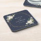 Add a personal touch to your wedding celebration with these stylish and memorable party items! Design features white watercolor flowers, greenery and gold frame on navy blue background.