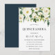 White Flowers Elegant Green Quinceanera Invitation