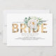 Elegant and unique white flowers, greenery foliage and gold typography bridal shower invitations