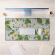 White Flowers Lemons Green Leaves Pattern on White Desk Mat