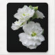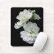 Two delicate white stock flowers stand out dramatically on this black mousepad.