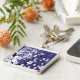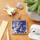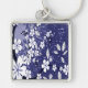 White Flowers on Blue Grunge Keychain