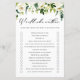What would the mom rather do? | Add these fun and playful baby shower game card to your event. This customizable "Would She Rather" game card features watercolor illustrations of white flowers and greenery. Personalize by adding your own details. This white floral baby shower guessing game card is perfect for winter and spring baby showers and baby parties.