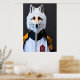 Portrait of a cute and adorable Anthropomorphic White fox in a firefighter uniform. This is a AI generated art.