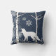 If you love birch trees, foxes, nature, and wildlife you'll love this pretty pillow in black, blue, and white featuring white silhouette foxes, one on each pillow side, on a background of dark blue winter sky with big and small snowflakes, and white birch trees.