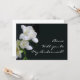 A tasteful bridesmaid request card with white freesias on a black background with white lettering. The lettering is fully customisable and the reverse of the card is left blank for you to add your message and details.