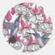Vector seamless pattern with hand drawn fuchsia flowers and hummingbirds