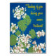 A pretty, floral greeting card in support of someone undergoing treatment for cancer, with white geraniums on a blue background, from a screenprint by Judy Adamson. You can add your own inside message.