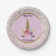 White Glitter Glam Unicorn Pink Birthday Party Paper Plate