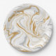 White, Gold and Grey Marble Like Swirls Fluid Art Paper Plate
