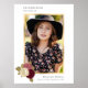 Elegant white and gold funeral photo welcome sign featuring alabaster, blush and burugndy roses.