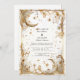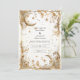 A luminous celestial wedding design glowing in soft white and metallic gold. This invitation features ornate swirling filigree, crescent moons, scattered stars, and shimmering celestial accents that create an ethereal, dream-filled atmosphere. The refined Art Nouveau frame adds a luxurious vintage touch, making it ideal for couples who want a romantic, moonlit, and enchanting celebration aesthetic.