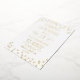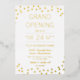 White grand opening invitation with a smattering of confetti in gold foil and text in gold foil too. Elegant white and gold grand opening invitation for your business.