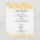A modern, elegant wedding details/program/timeline. A white background decorated with faux gold confetti. Personalize and add your names and wedding details. Black coloured letters.