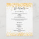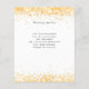 A modern, elegant wedding details/program/timeline. A white background decorated with faux gold confetti. Personalize and add your names and wedding details. Black coloured letters.