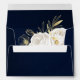 beautiful white flowers and gold leaves elegant navy blue wedding envelope.